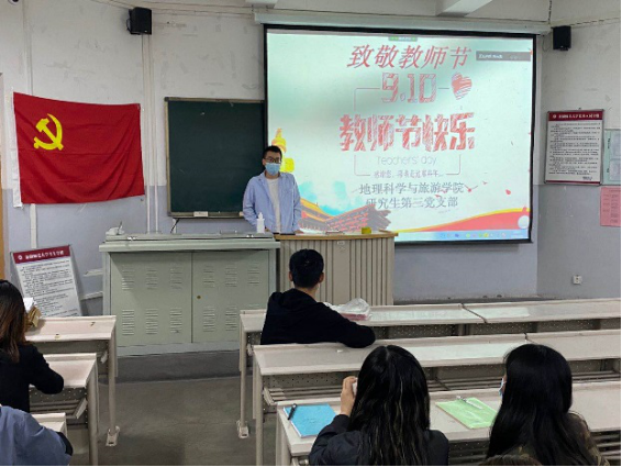 9月至10月,地理科学与旅游学院各党支部组织了形式多样的活动,对习总书记教师节寄语展开系统学习,并开展了内容丰富的研讨。其中教师一支部组织召开“学寄语,悟思想,育新人”主题党日活动,研究生第三支部组织召开“致敬教师节”党课学习活动等,其余各支部纷纷通过线上线下等多种形式组织学习及讨论活动。