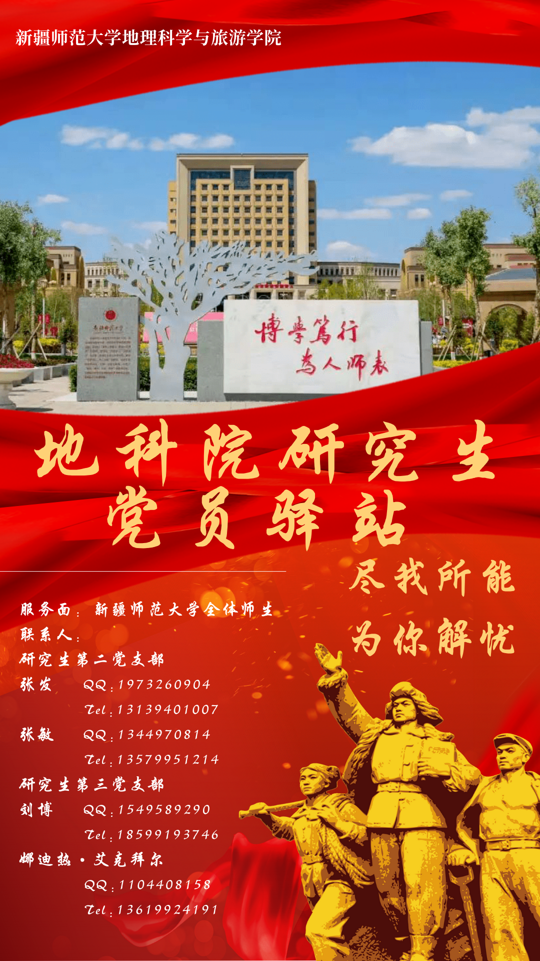 本着“全心全意为师生服务,踏踏实实树党员形象的宗旨,现yl7703永利研究生第二党支部和第三党支部整合力量,建立地科院研究生党员驿站,为校内外有需要的师生提供力所能及的帮助。无论是师弟师妹需要了解咨询专业经验;还是校外校友因疫情不便,需委托校内同志帮忙办事;再或者……。在非盈利的前提下,我们经了解后尽可能的为您提供力所能及的帮助。如您需要帮助,可以联系海报中的联络员,我们的目标是:尽我所能,为你解忧。