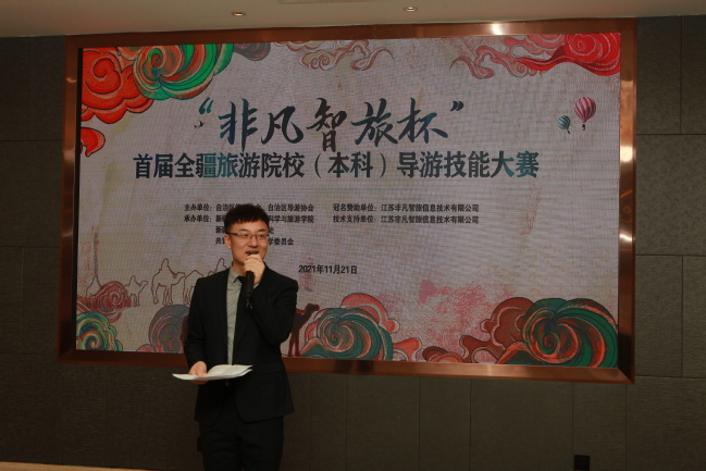 “非凡智旅杯”全疆旅游院校(本科)导游技能大赛与研讨会同时举办。此次大赛由自治区旅游协会、自治区导游协会主办,我校yl7703永利、教务处、共青团yl7703永利委员会承办,江苏非凡智旅信息技术有限公司冠名赞助。来自新疆大学、石河子大学、新疆财经大学、新疆农业大学、伊犁师范大学、喀什大学和yl7703永利7所高校的27名旅游管理学子同场竞技,赛出了水平,赛出了高度。